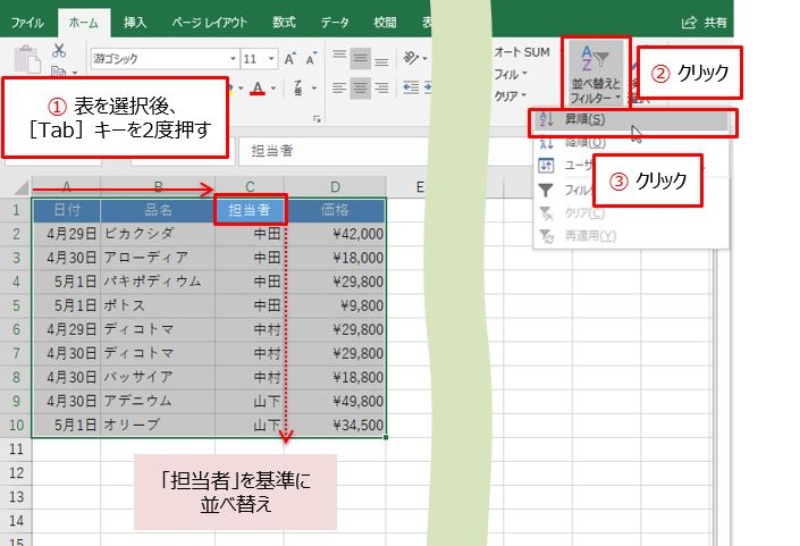 奥深いexcelの並び替え Tabキーを使いこなそう 日経クロステック Xtech