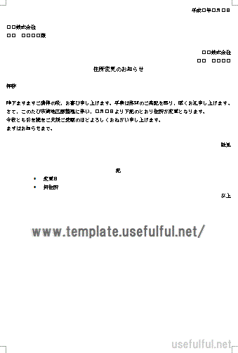 事業所住所表示変更のお知らせの書式 事業所住所表示変更のお知らせ一覧 フィデリ ビジネス文書集