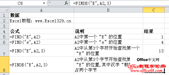 Excel使用find和findb函数查找字符串 Office教程学习网