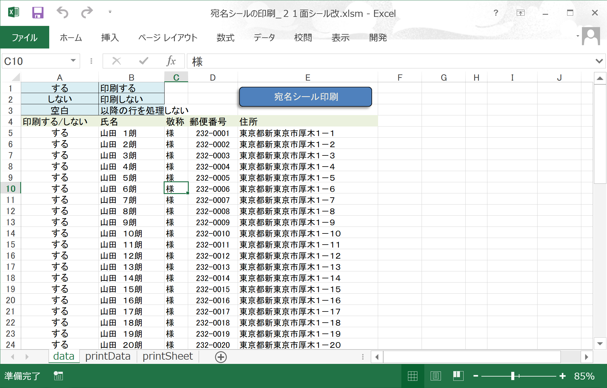 エクセルのみで差し込み 連続 印刷テンプレート Word不要で簡単印刷 ひよこモラトリアム