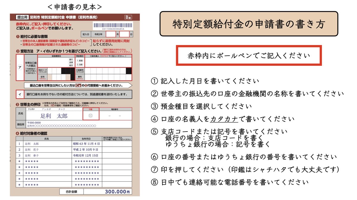 足利市 در توییتر 確認書類をお忘れずに 特別定額給付金の申請には下記の確認書類のコピーが必要です 必ずご用意の上 返信用封筒に同封してください 必ずご用意ください 本人確認書類 振込口座確認書類 返信用封筒に必ず同封してください 足利市
