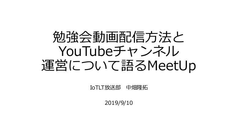 勉強会動画配信方法とyoutubeチャンネル 運営について語るmeetup