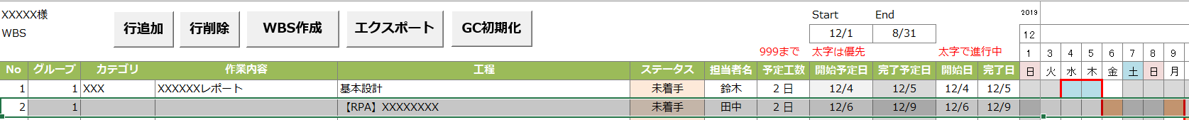ガントチャート Wbsを作成するならこれ Wbs作成君 ガントチャート テンプレート 仕事術
