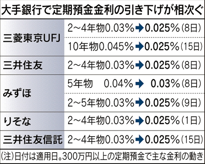 預金金利下げ 大手銀5行すべてで 三井住友信託が追随 日本経済新聞