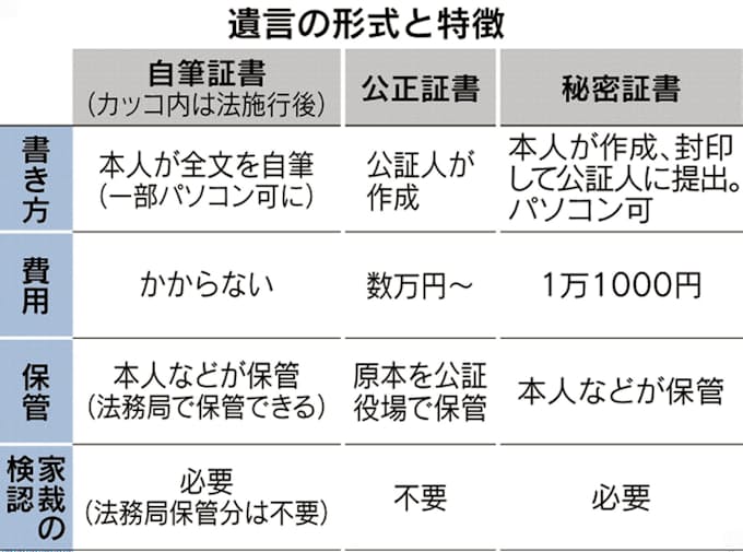 自筆遺言が書きやすく 財産目録はパソコン作成okに 日本経済新聞