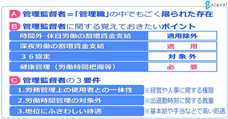 管理監督者のポイント 要件表 社会保険労務士法人シグナル 代表有馬美帆 Sharoushisignal Note